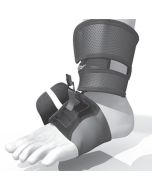 - Applicera ankelbandet med den smala kardborreremsan nedåt och snabbkopplingen framåt. Placera ankelbandet över ankelns bredaste del. Fäst ankelbandet ordentligt men dra inte åt för hårt.
